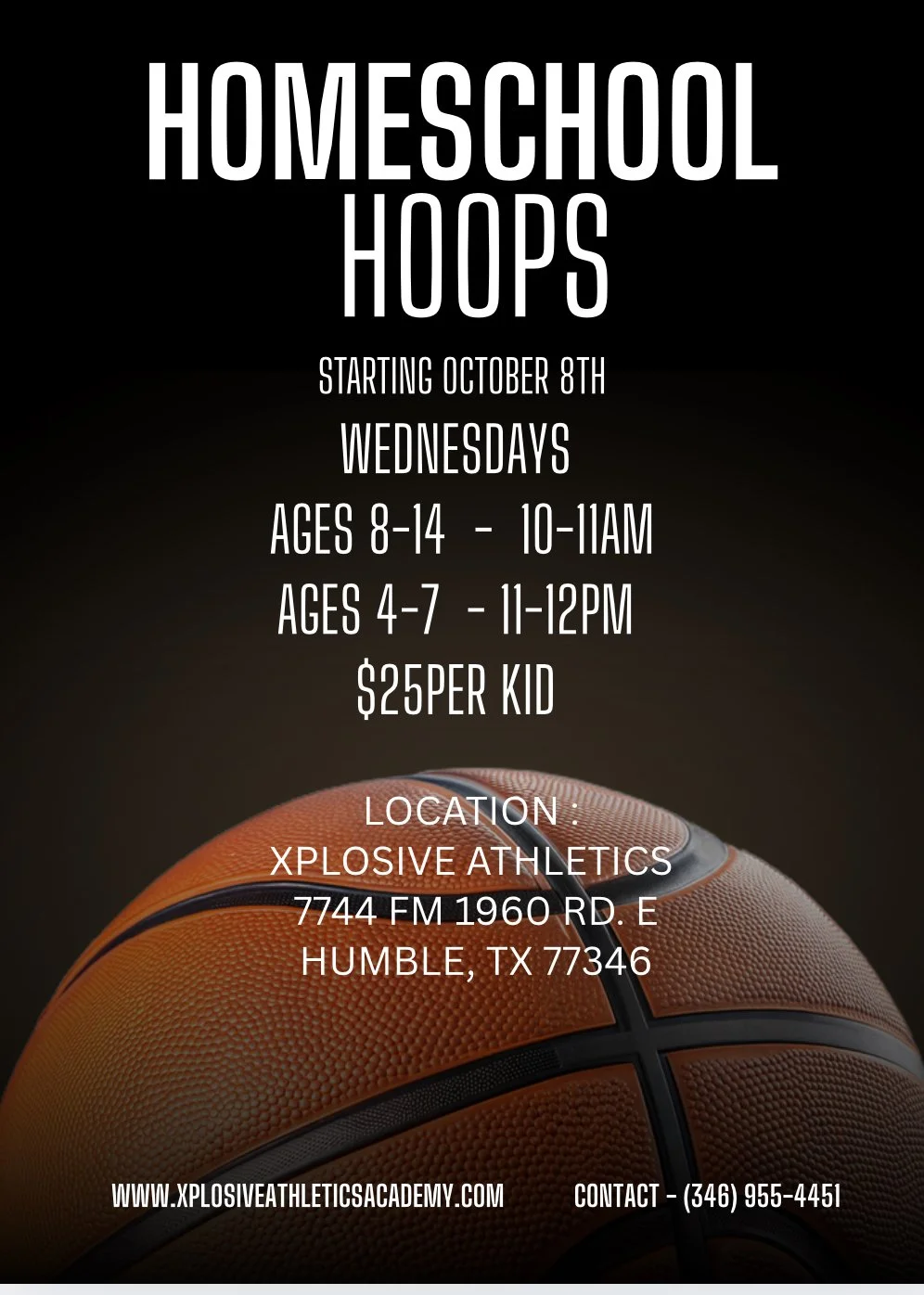 HOMESCHOOL HOOPS 🔥 HOMESCHOOL HOOPS 🔥 HOMESCHOOL HOOPS 🔥 STARTING OCTOBER 8th wednesdayS 10am-11am Ages 8-14Wednesdays 11am-12pmAges 4-7$25 per child YOUR PAYMENT CAN BE PROCESSED HERE: ONE TIME PAYMENT $100 $25 WEEKLY PAYMENTS